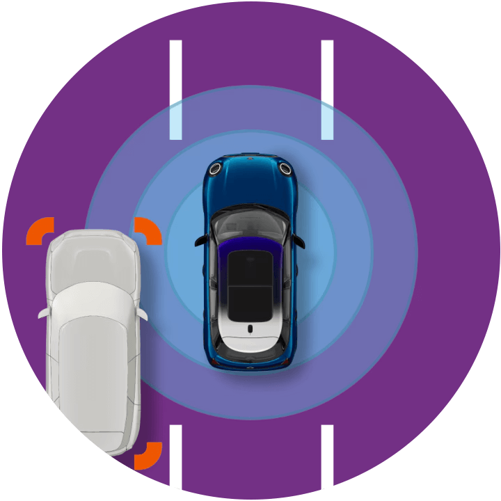 L’équivalent d’avoir une paire d’yeux supplémentaire, l’assistant de conduite de série de MINI vous avertira si un véhicule se trouve dans votre angle mort, et redirigera activement votre MINI dans sa voie si vous commencez à dériver. En marche arrière, il détectera également le trafic derrière vous pour vous aider à freiner dans une situation dangereuse.