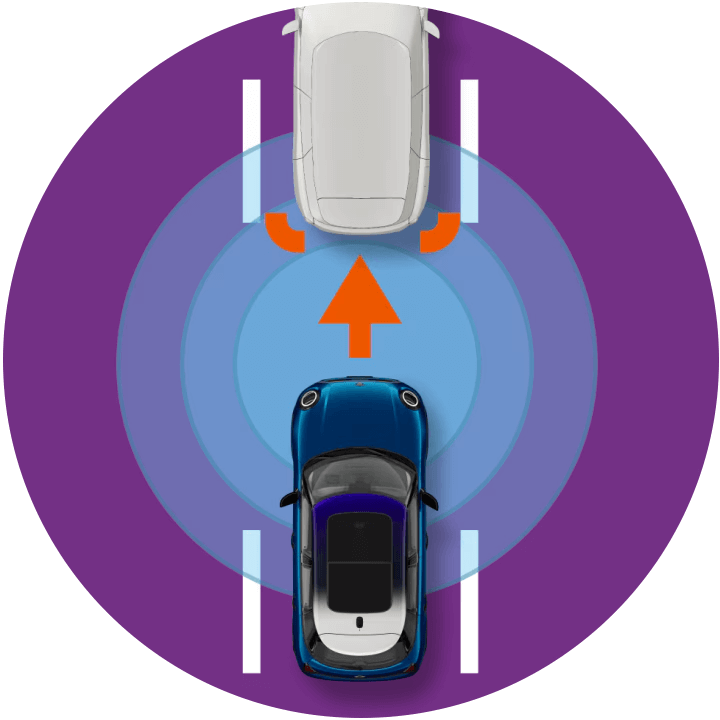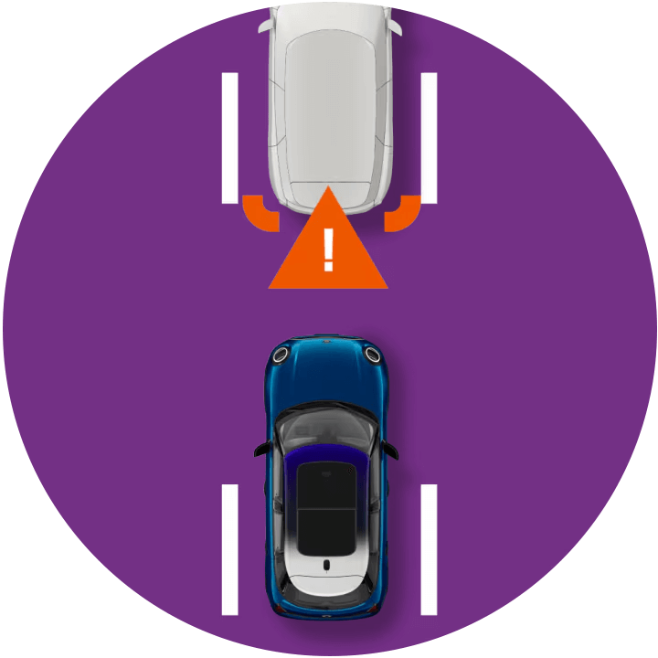 Grâce à l’avertisseur de collision frontale avec intervention des freins de série, votre MINI reste à l’affût des dangers qui vous guettent devant. Elle vous avertit des risques de collision et applique automatiquement les freins si nécessaire, pour vous garder hors de danger.